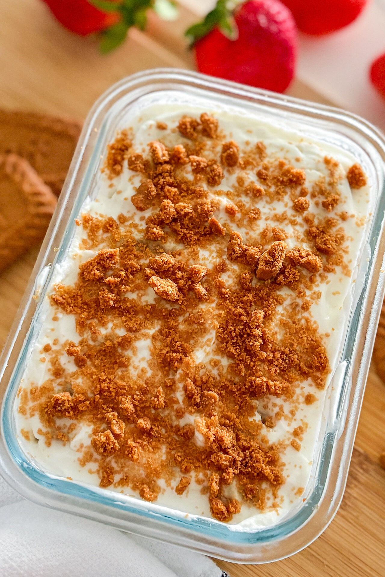 - Biscoff Cookies: Biscoff cookies give their signature flavor and soften as they chill in the yogurt, creating the perfect balance of sweet cookies and tangy yogurt.