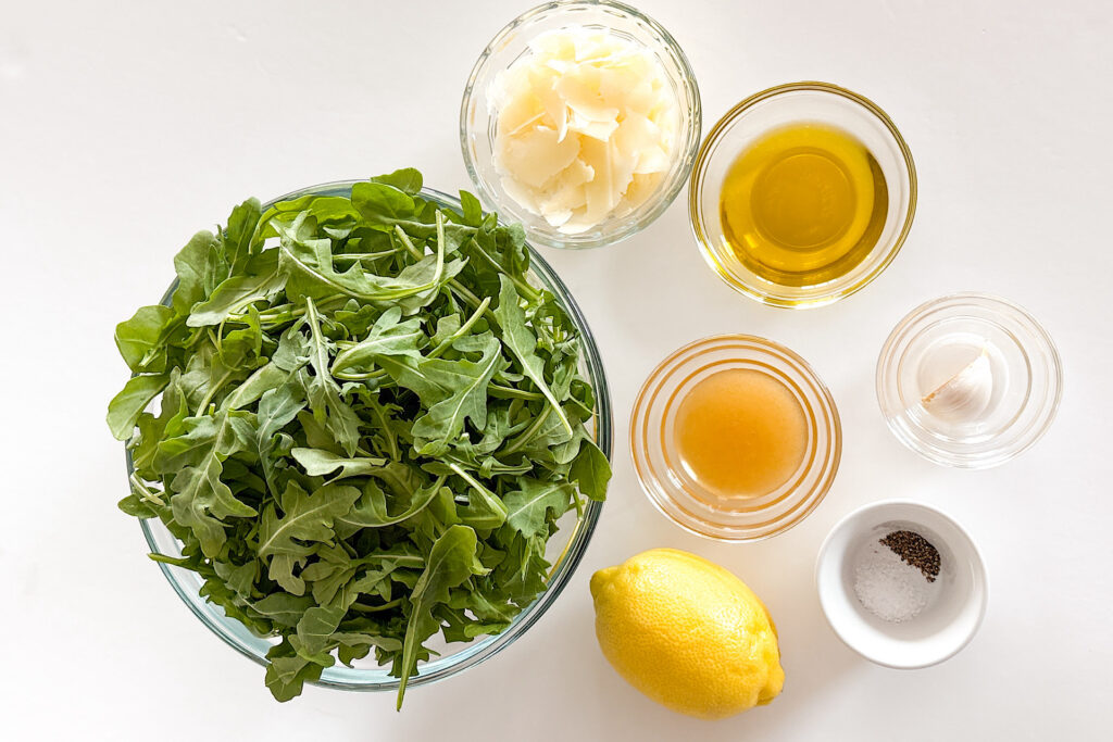 - Honey – I use a little honey to balance the acidity of the lemon and the peppery taste of the arugula. You can adjust the amount to taste depending on how sweet you like the dressing.