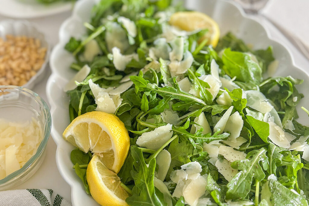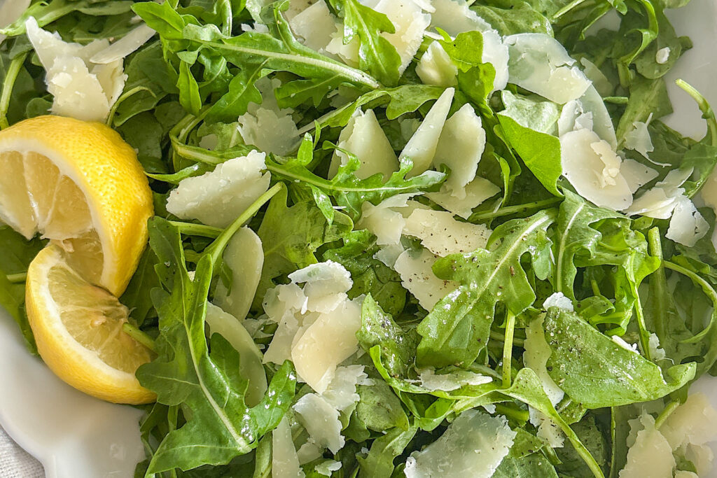 When it comes to arugula salad, this is the simplest and most flavorful version I know, and it’s so good! It’s a perfect side salad for weeknight dinners or special gatherings. It’s also light enough to enjoy at breakfast with eggs and easy to customize depending on what you’re serving it with.